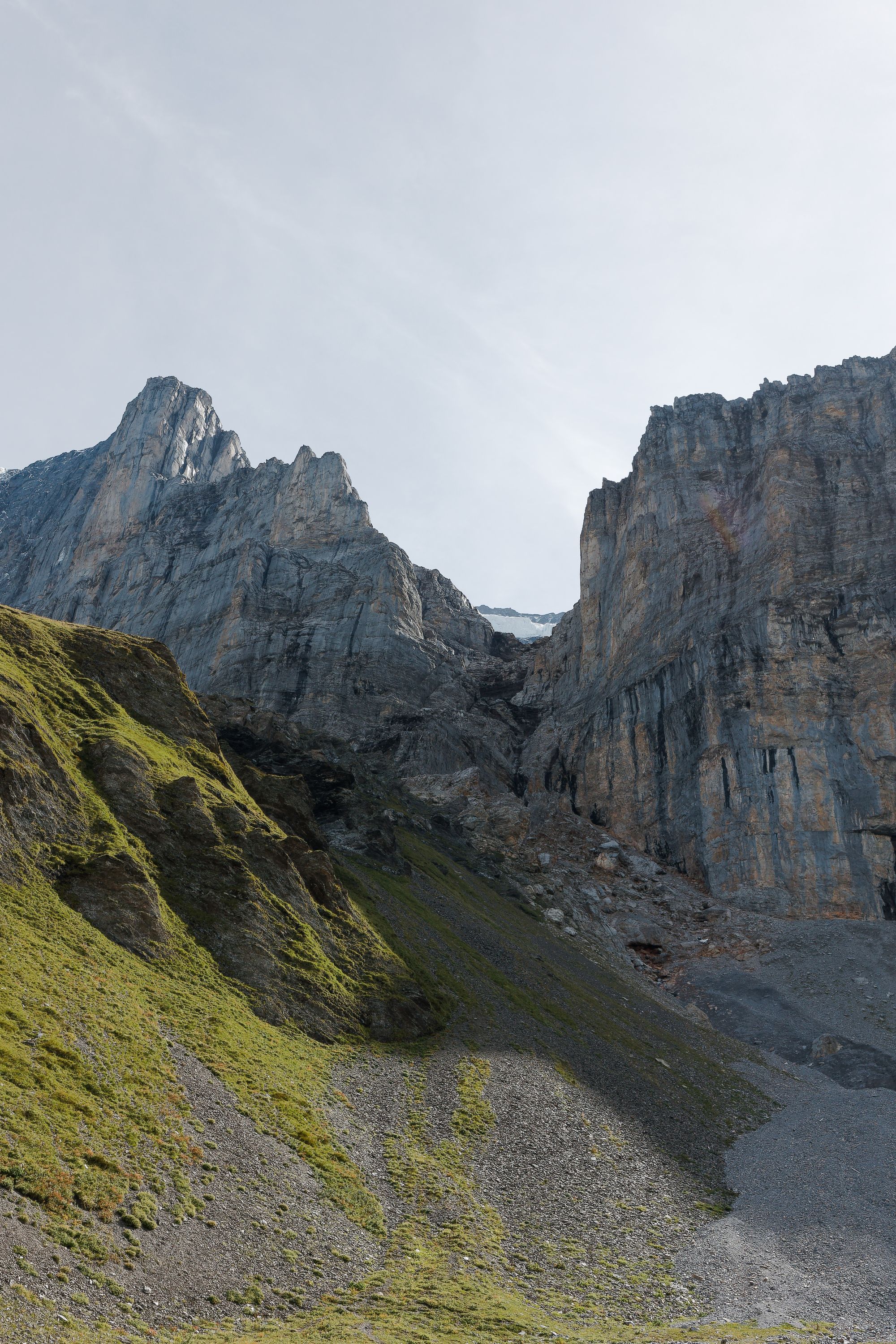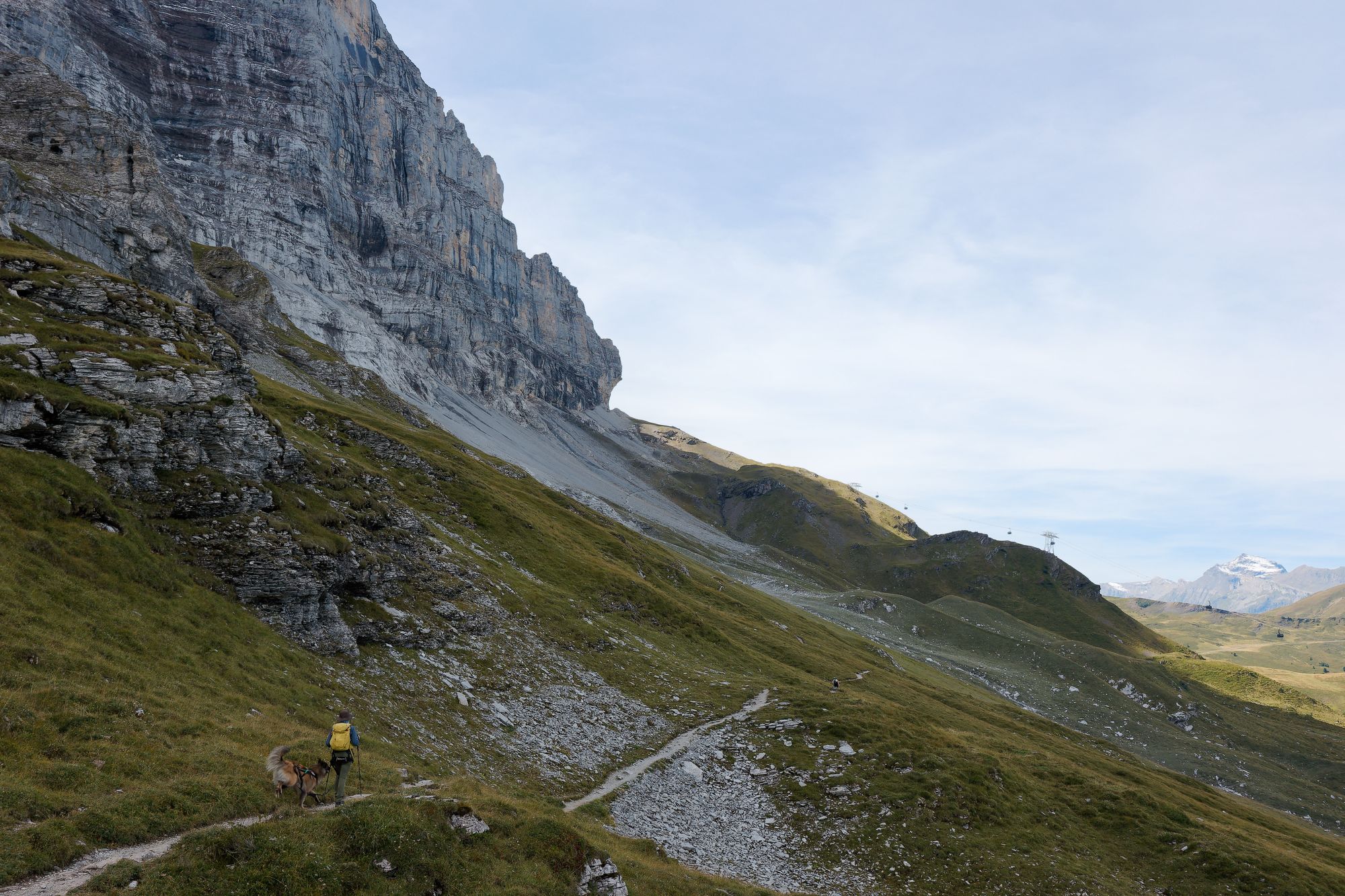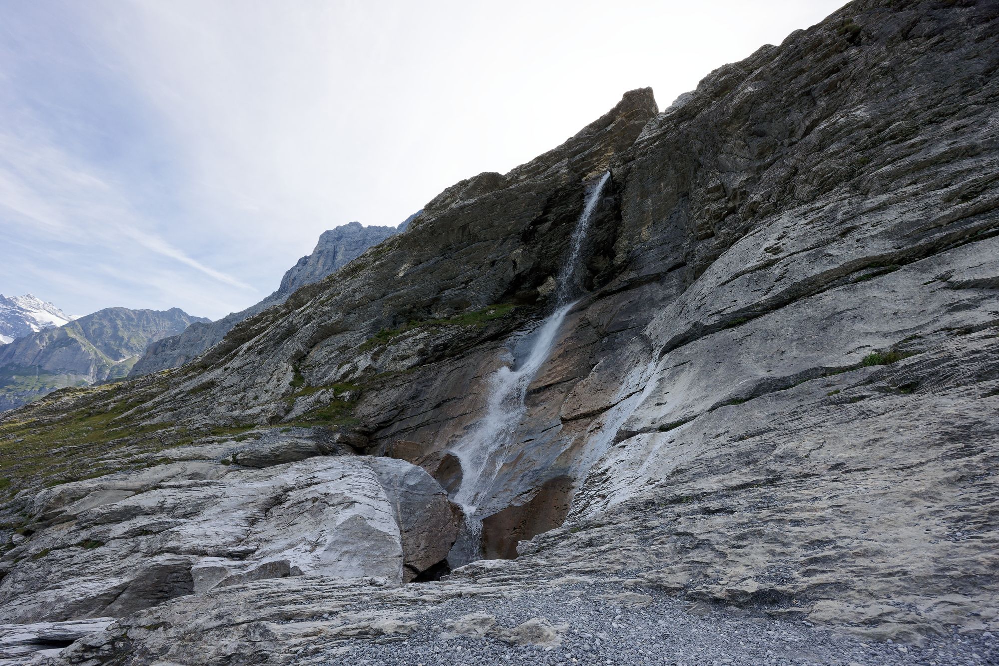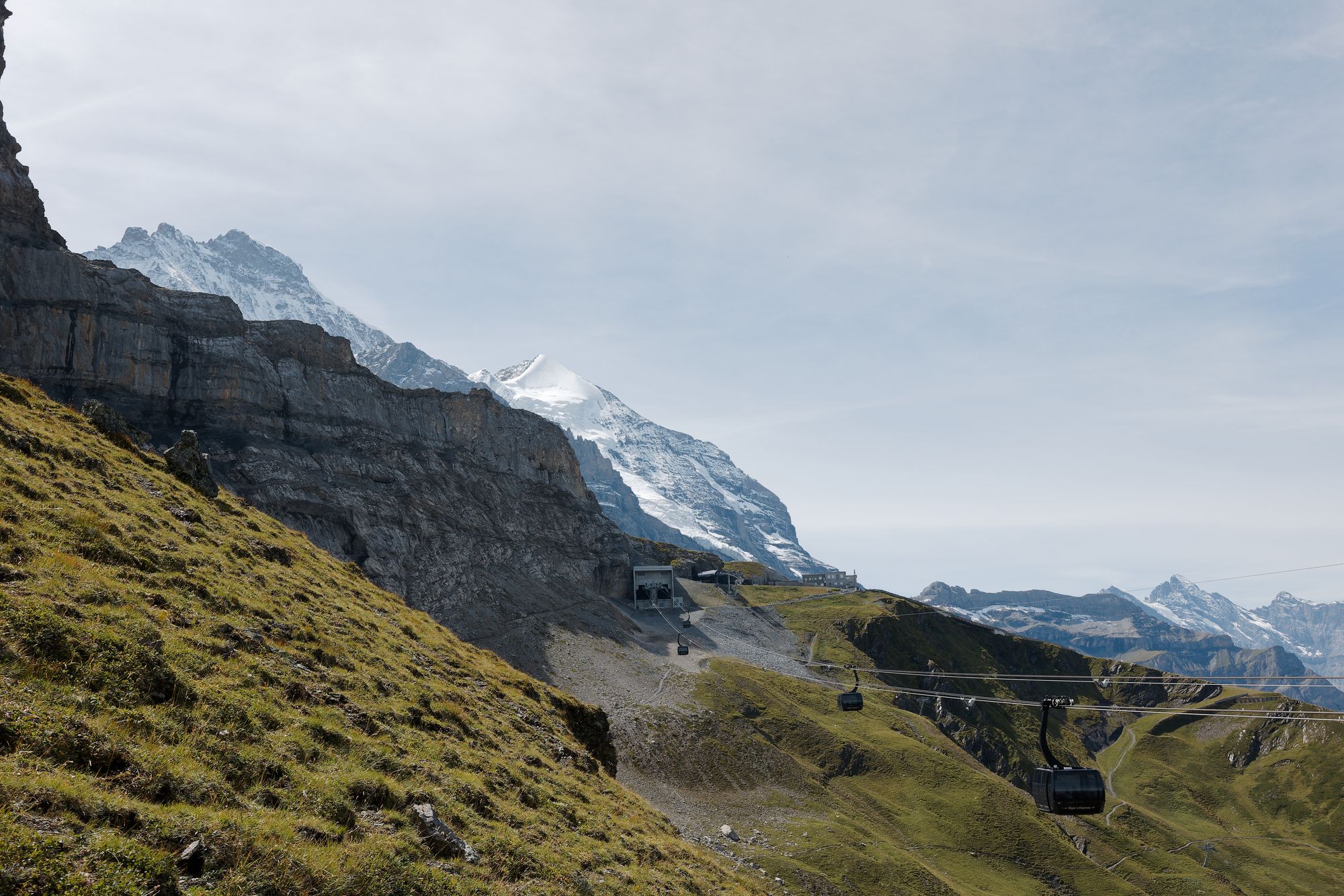 The Eiger trail follows the Eiger near the north face wall. The wall culminates at 3967m, 2000m above the trail. The Eiger North Face is a famous mountaineering route. The first ascent was not made until 1938, and more than 70 people have lost their lives in attempts to climb it. Regular rockfalls are heard as the glaciers melt towards the summit.