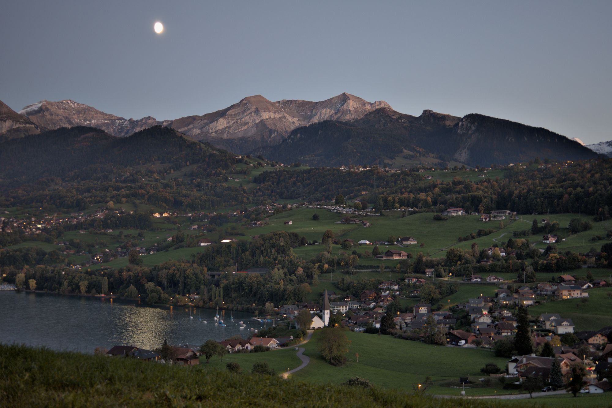 Petit tour dans la soirée autour de Spiez avec un chien heureux.