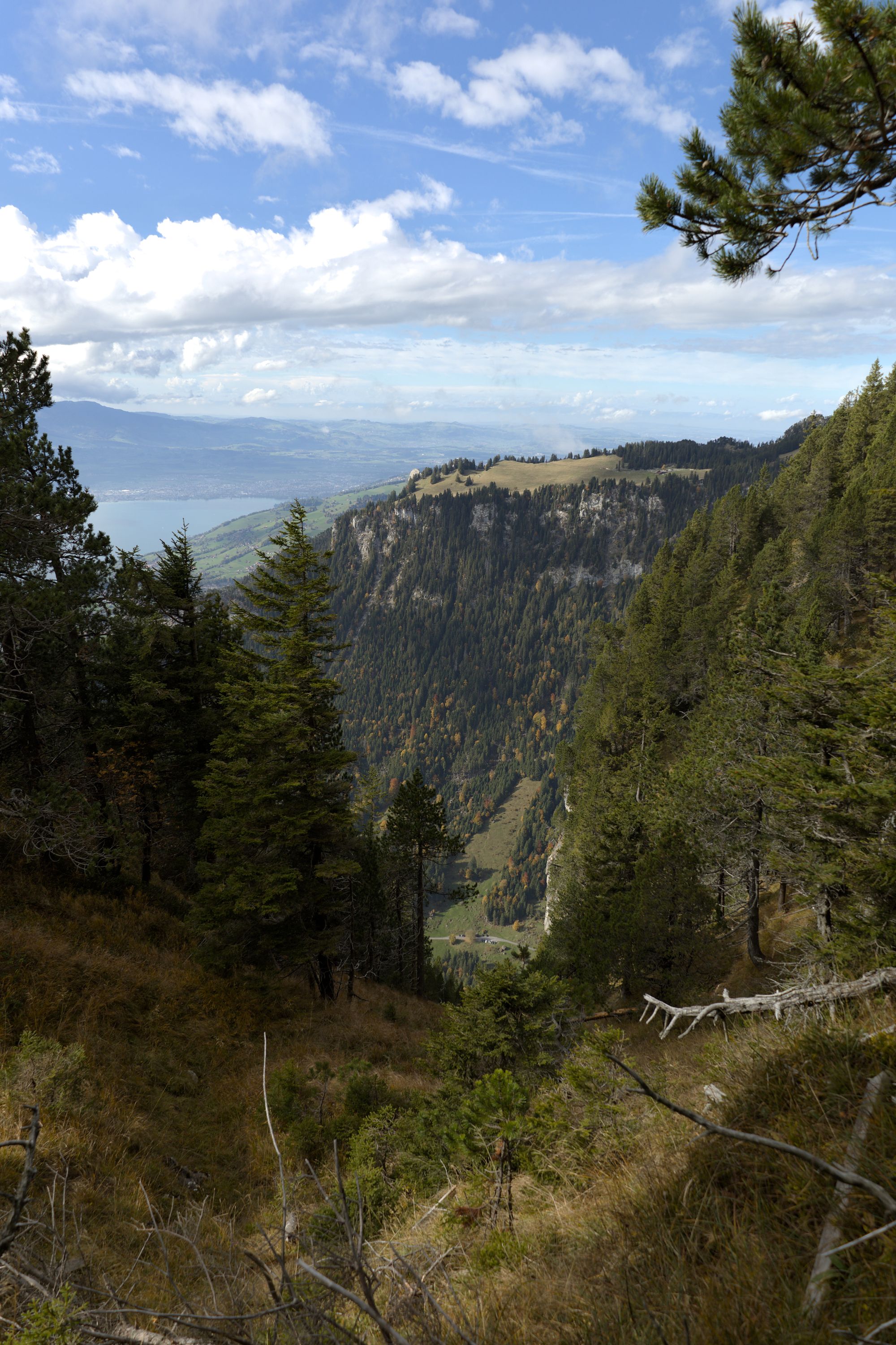 The steepest part start after Beatenberg, climbing in the forest with nice views from time to time of the surrounding area up to the top.