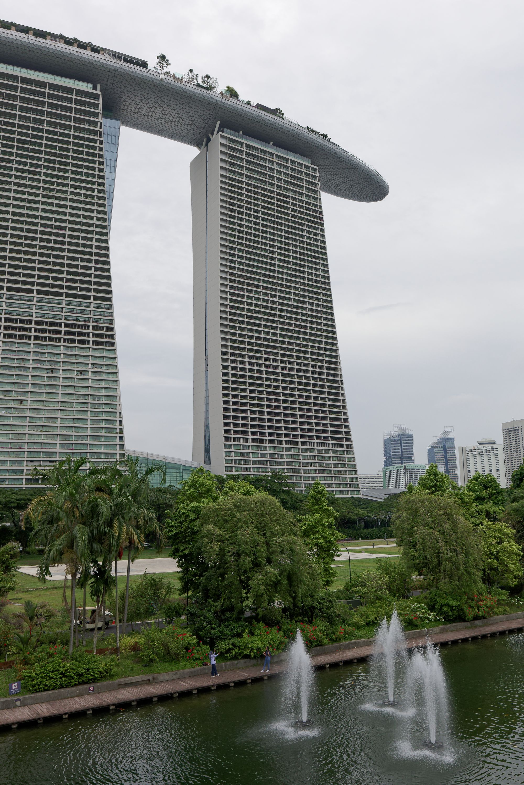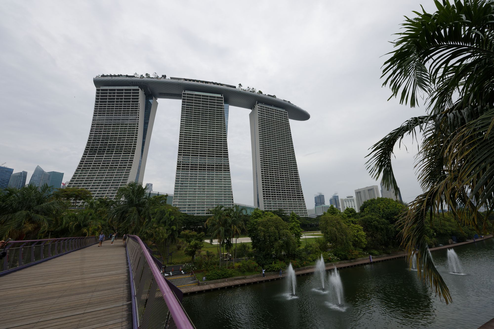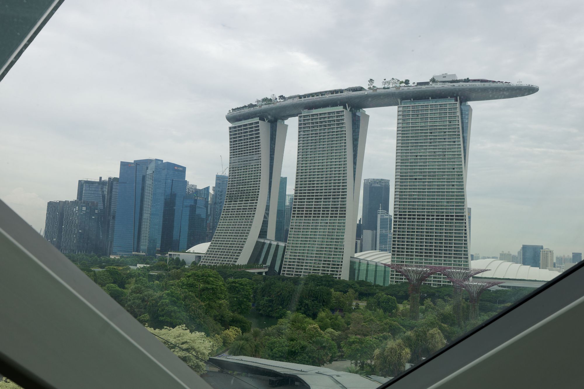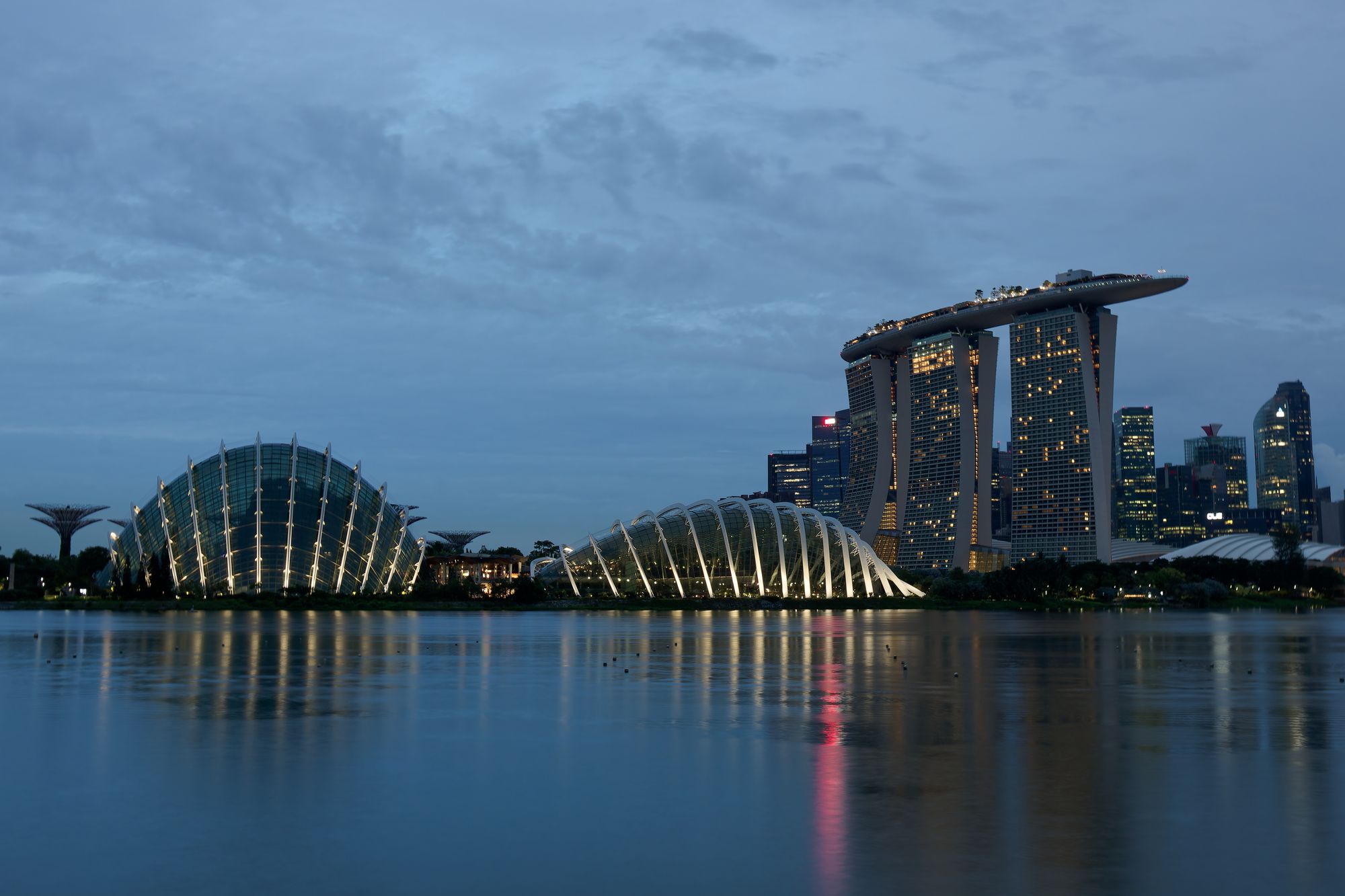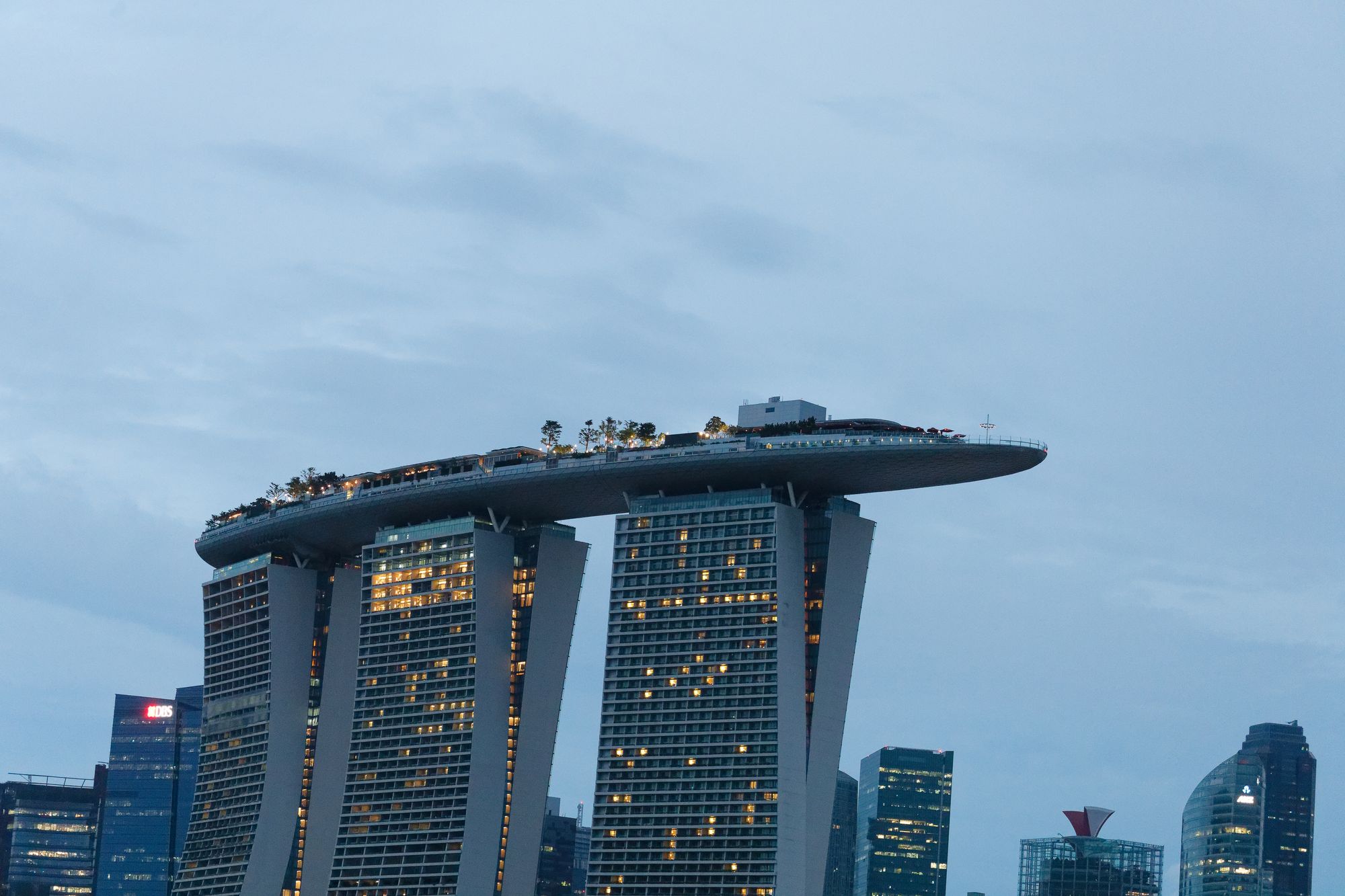 Le complexe Marina Bay Sands, avec son célèbre hôtel en forme de bateau, est une icône architecturale qui domine l'horizon.