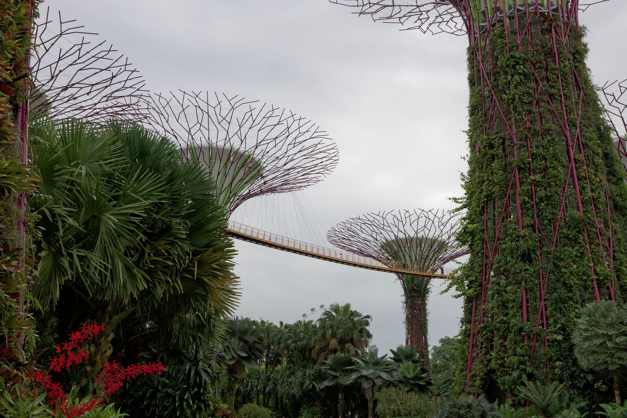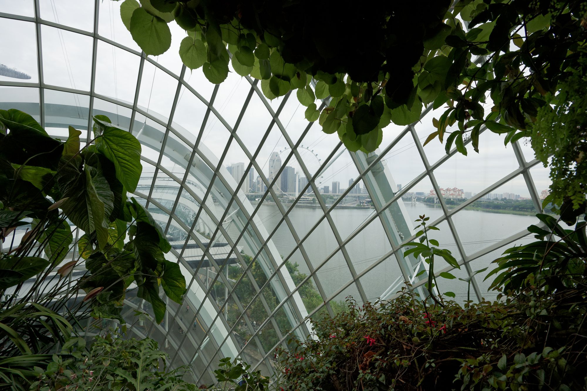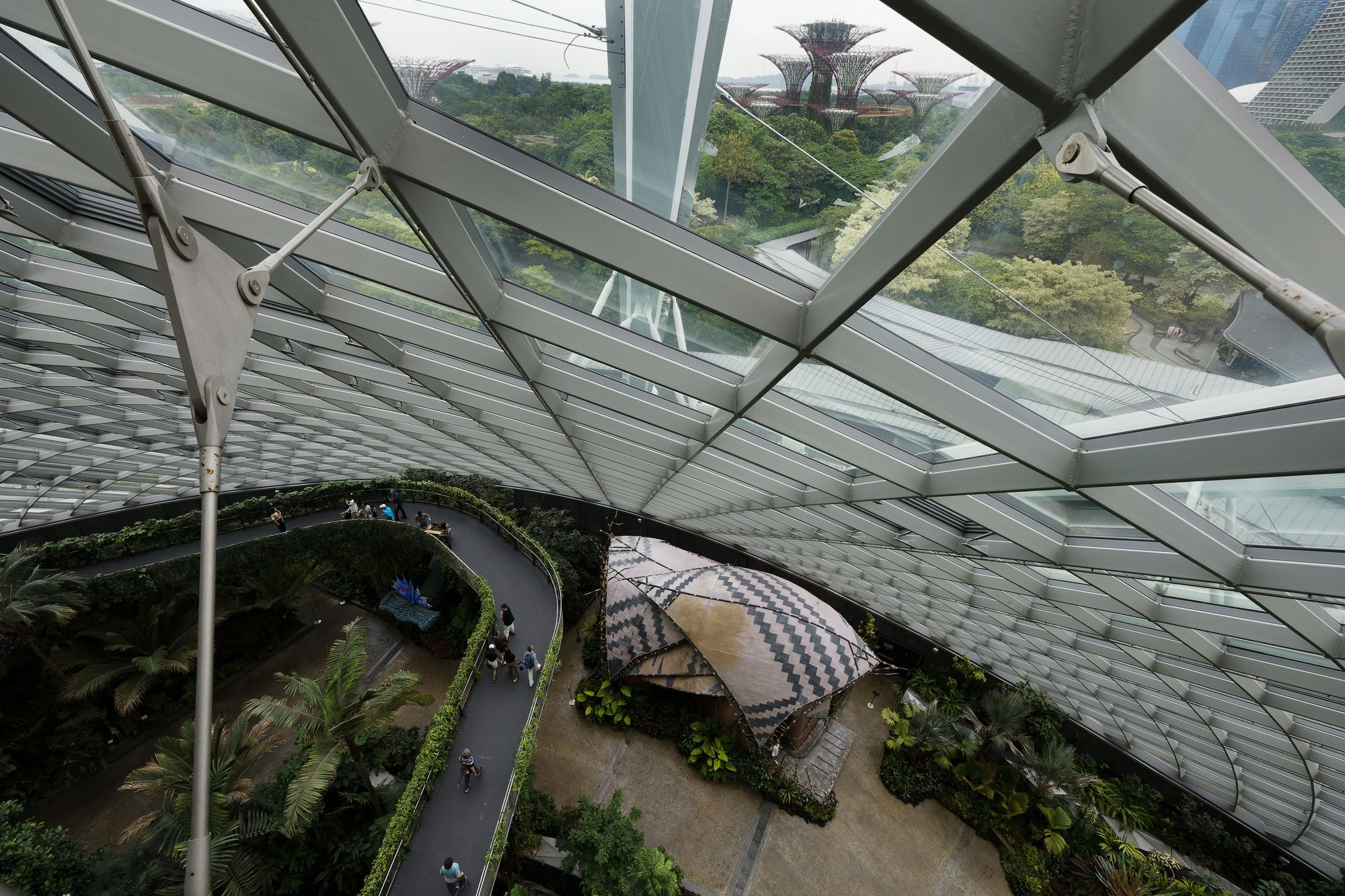 Les supertrees font partie intégrante du Cloud Forest et du Flower Dome, deux dômes de verre qui abritent des jardins thématiques avec une grande variété de plantes exotiques. Le Cloud Forest est le plus grand des deux.