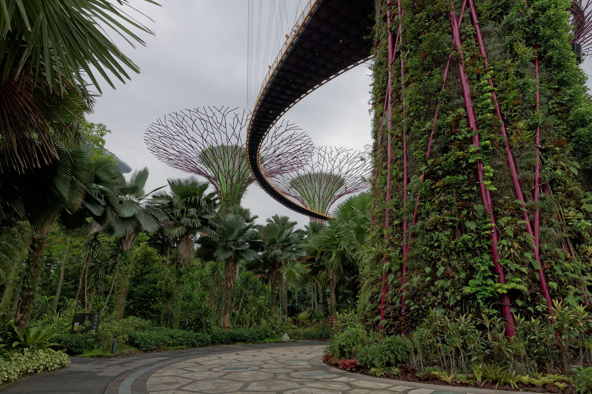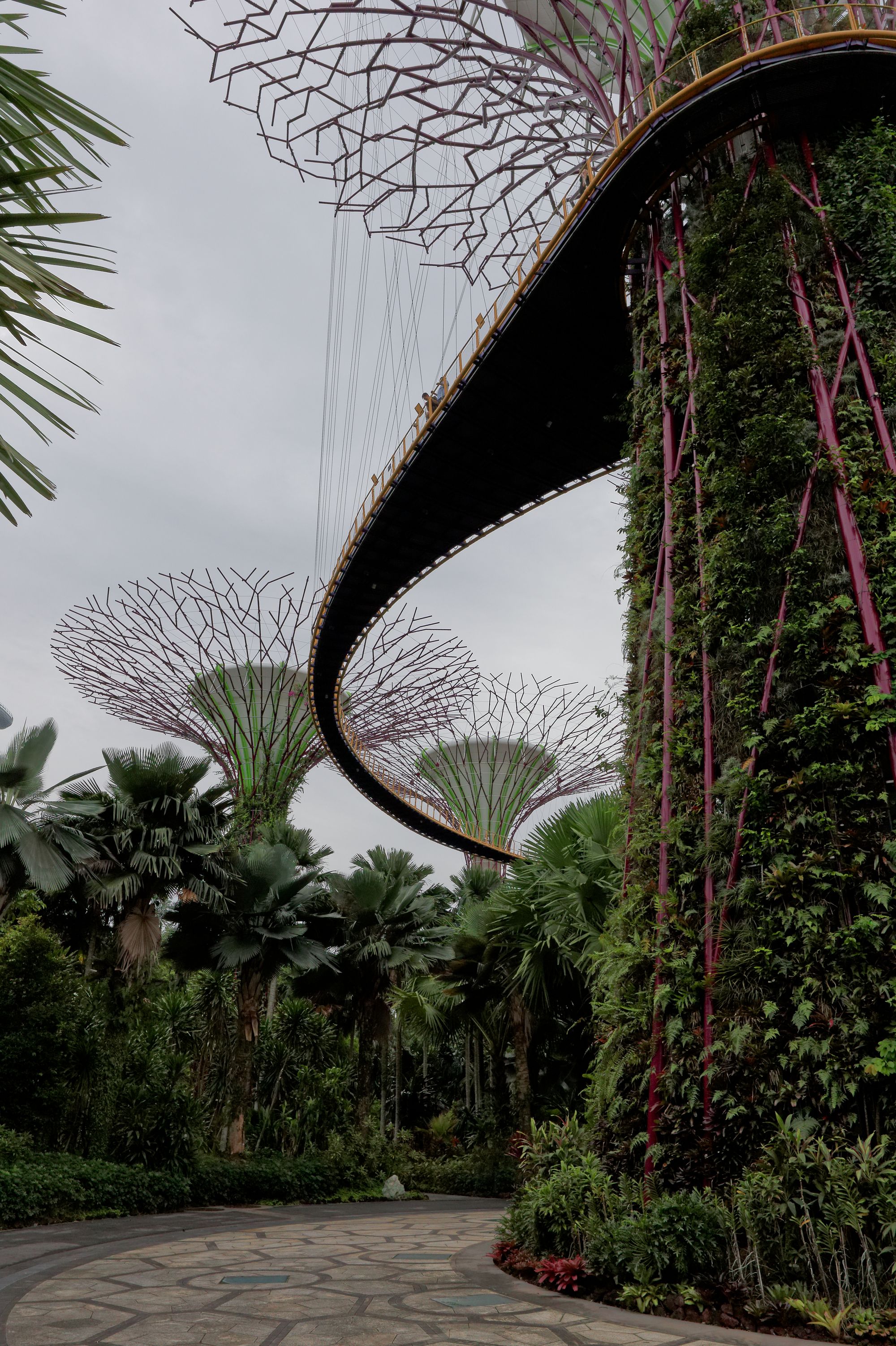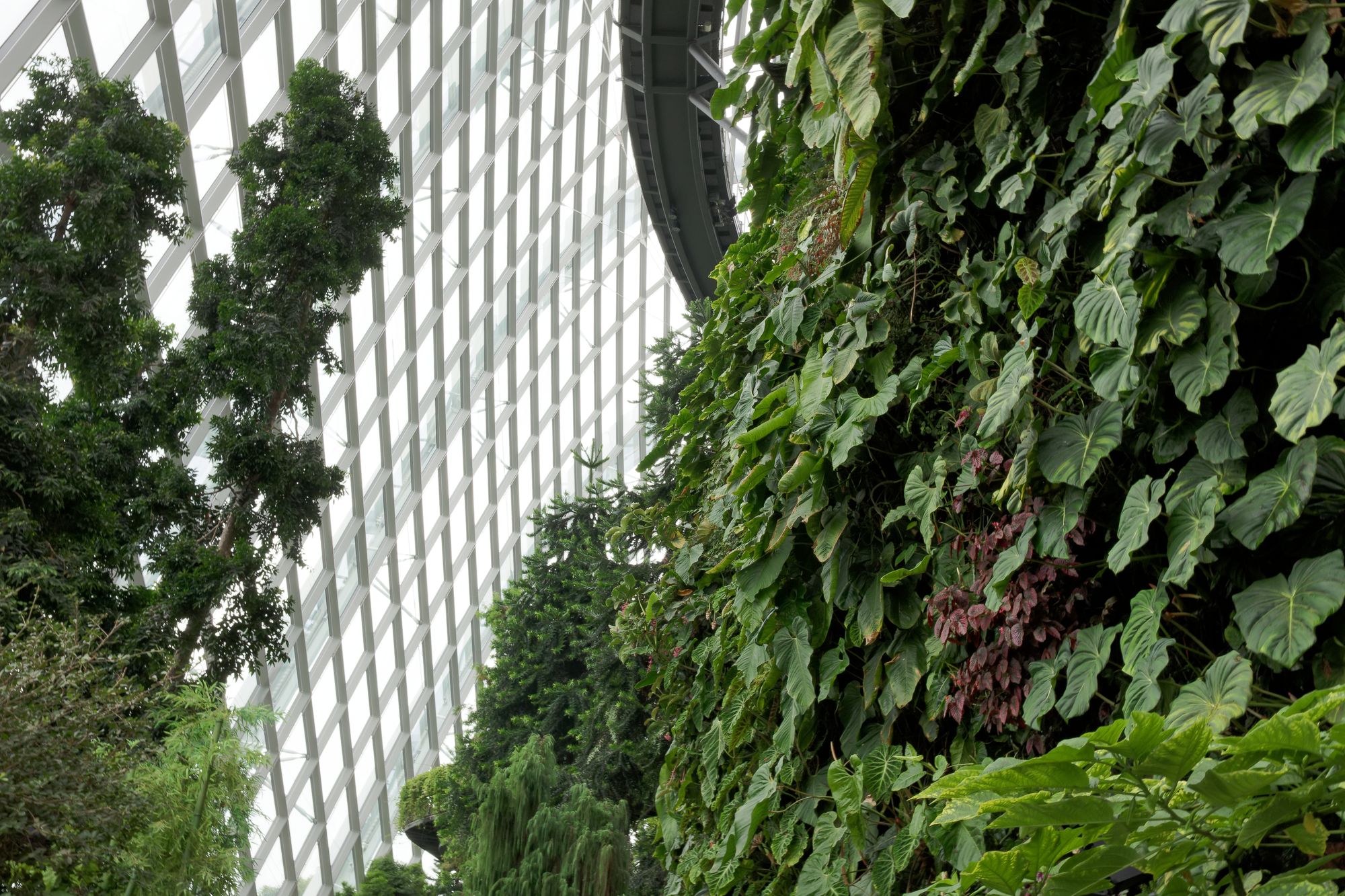 Les supertrees font partie intégrante du Cloud Forest et du Flower Dome, deux dômes de verre qui abritent des jardins thématiques avec une grande variété de plantes exotiques. Le Cloud Forest est le plus grand des deux.