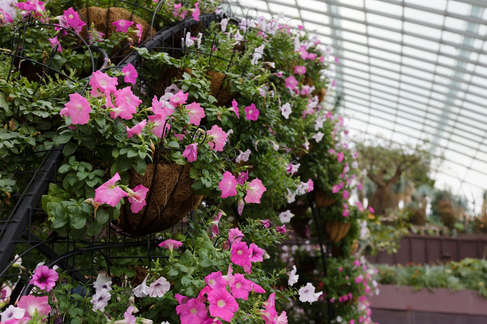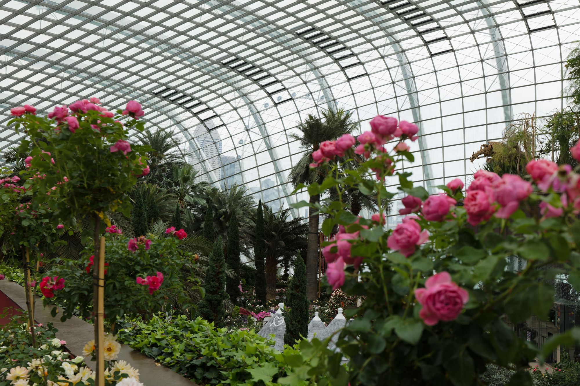 À l'intérieur du Flower Dome, les visiteurs sont transportés dans un monde botanique enchanté. Les températures sont maintenues à des niveaux agréables pour soutenir la croissance de différentes espèces végétales, ce qui permet de créer des écosystèmes variés.