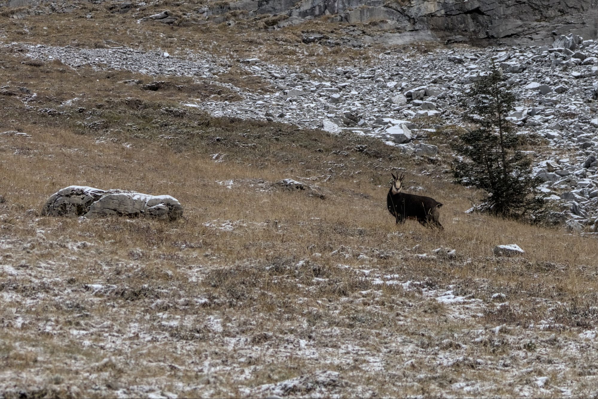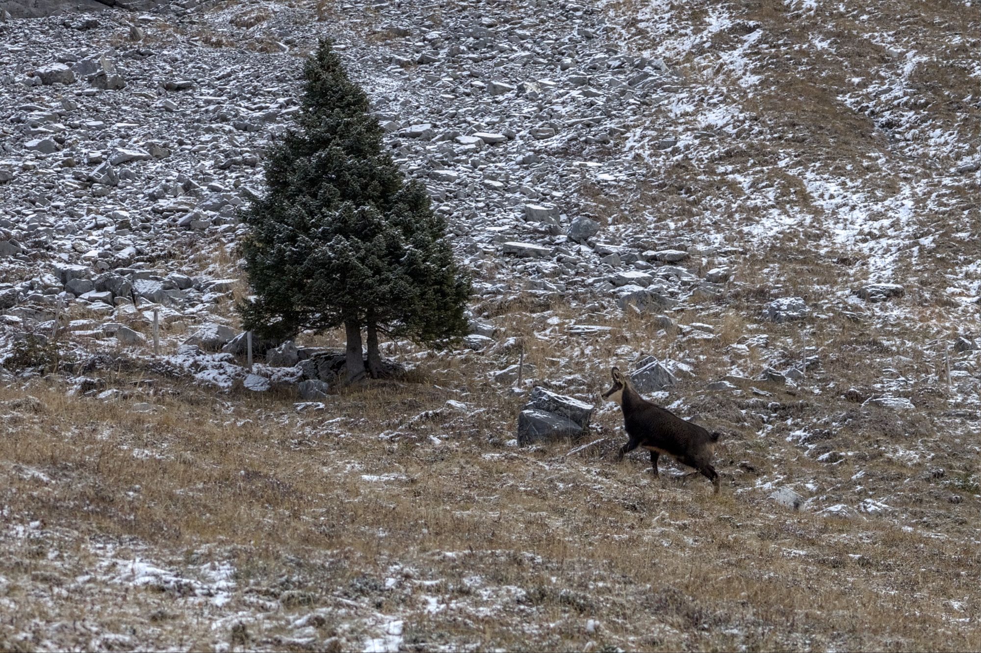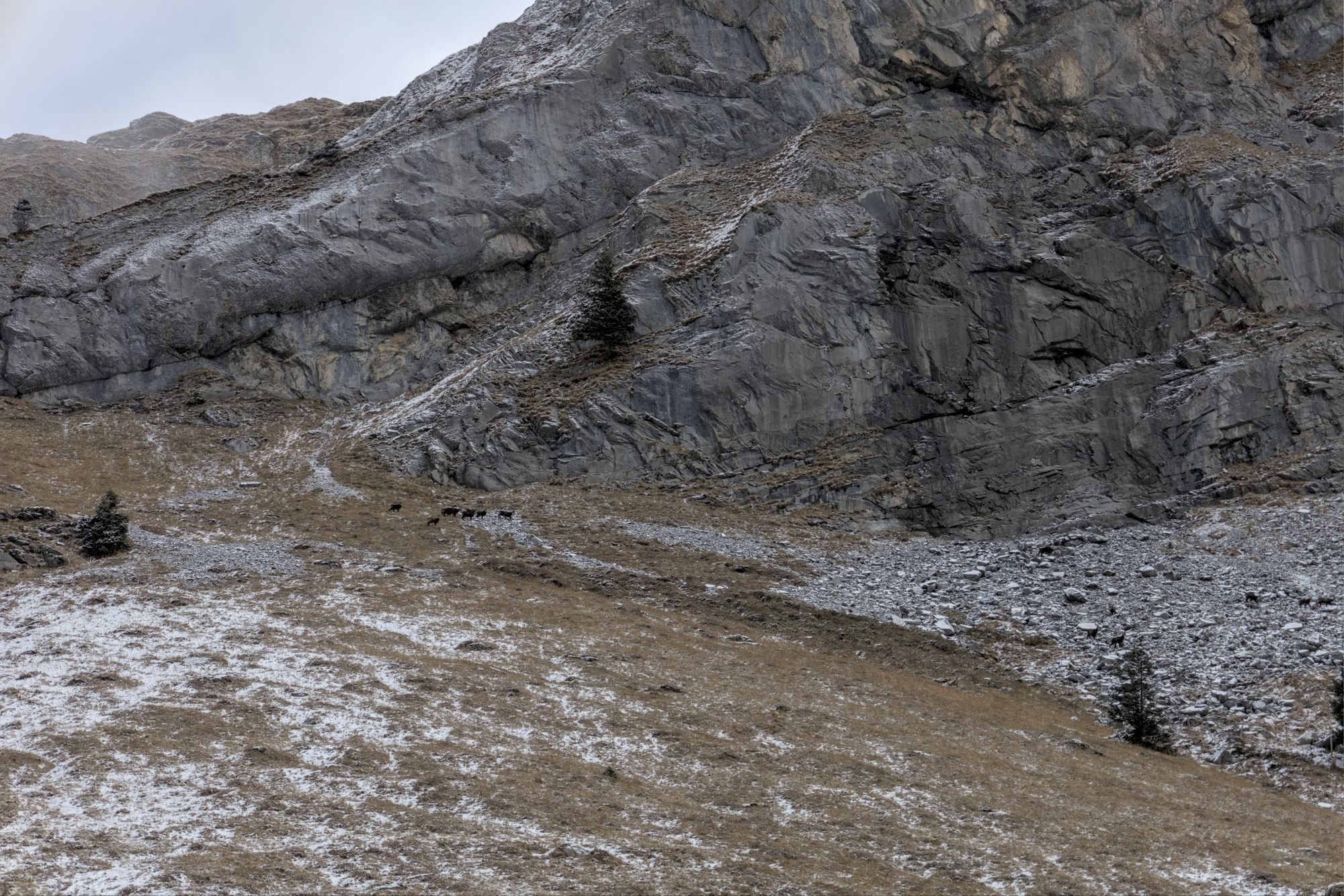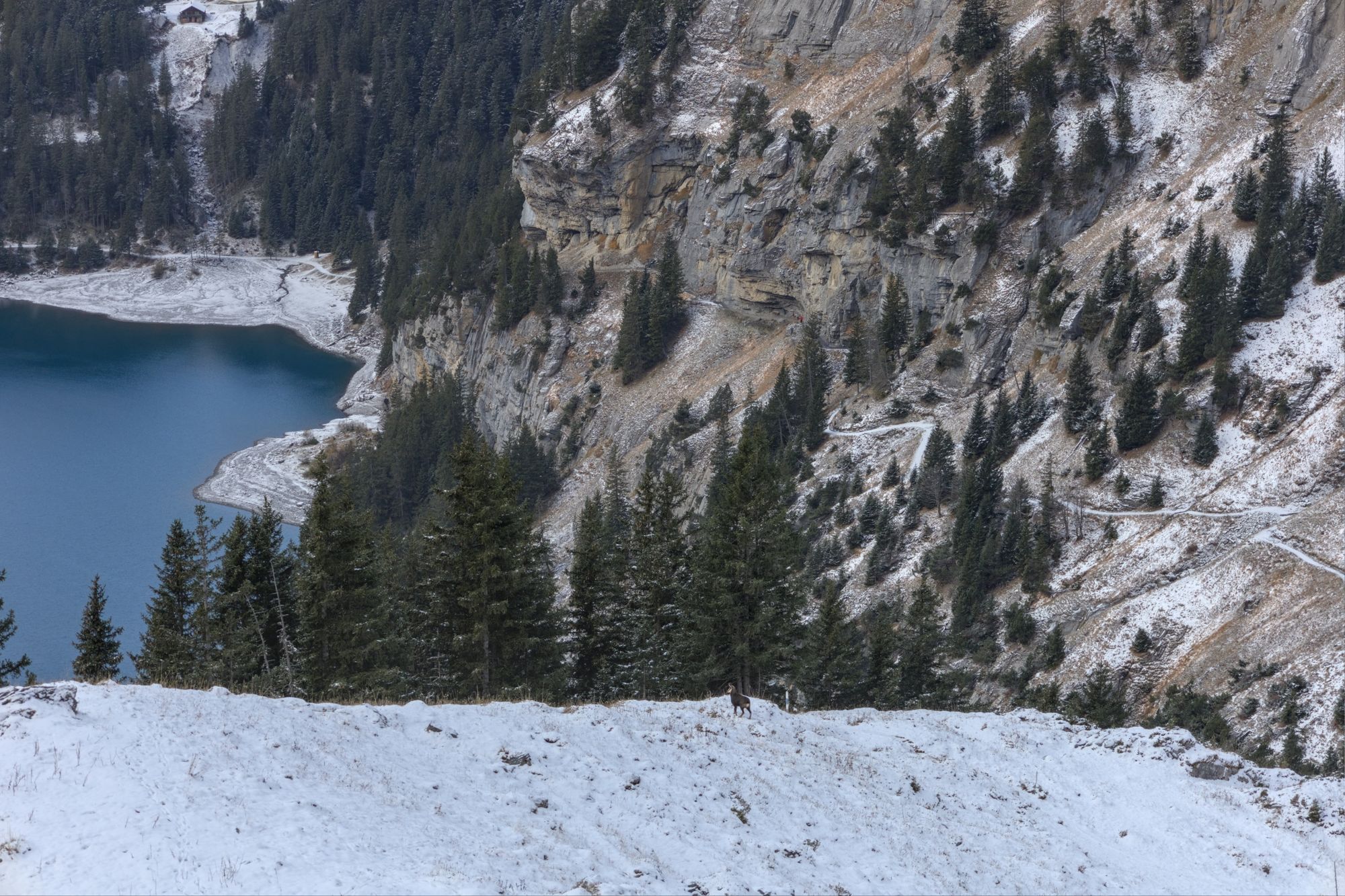 Hike to Oeschinensee in winter with some Chamois encounters.