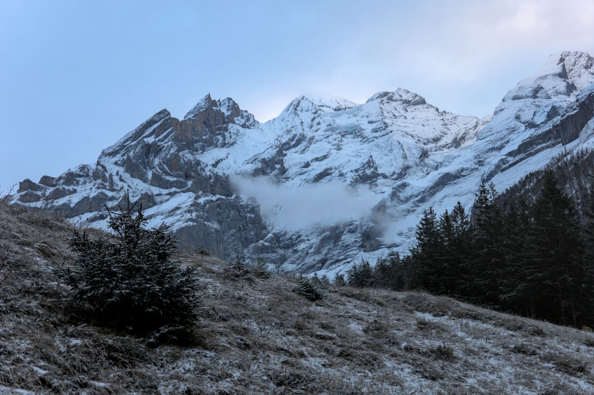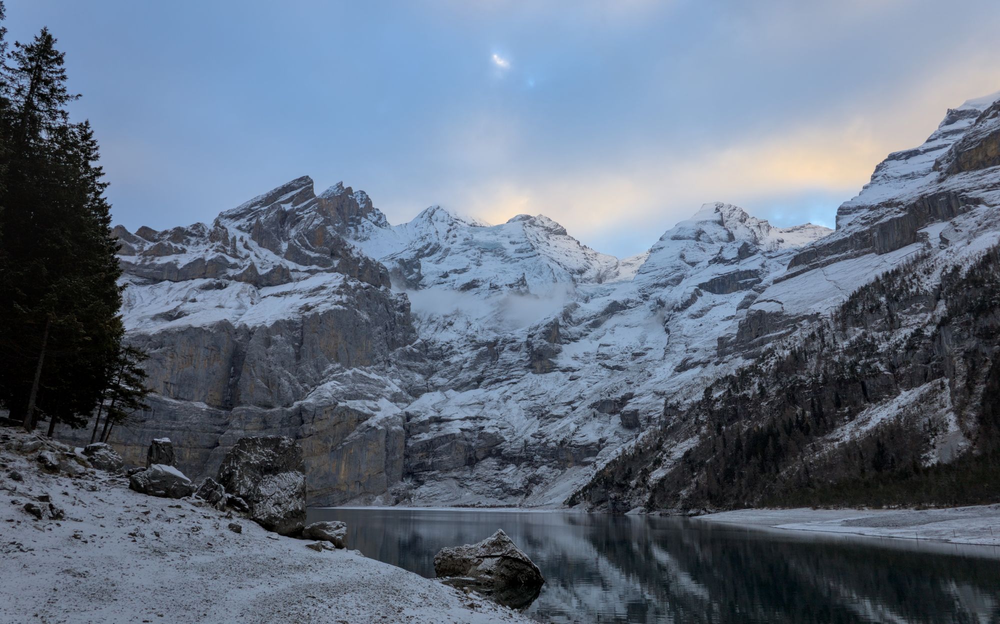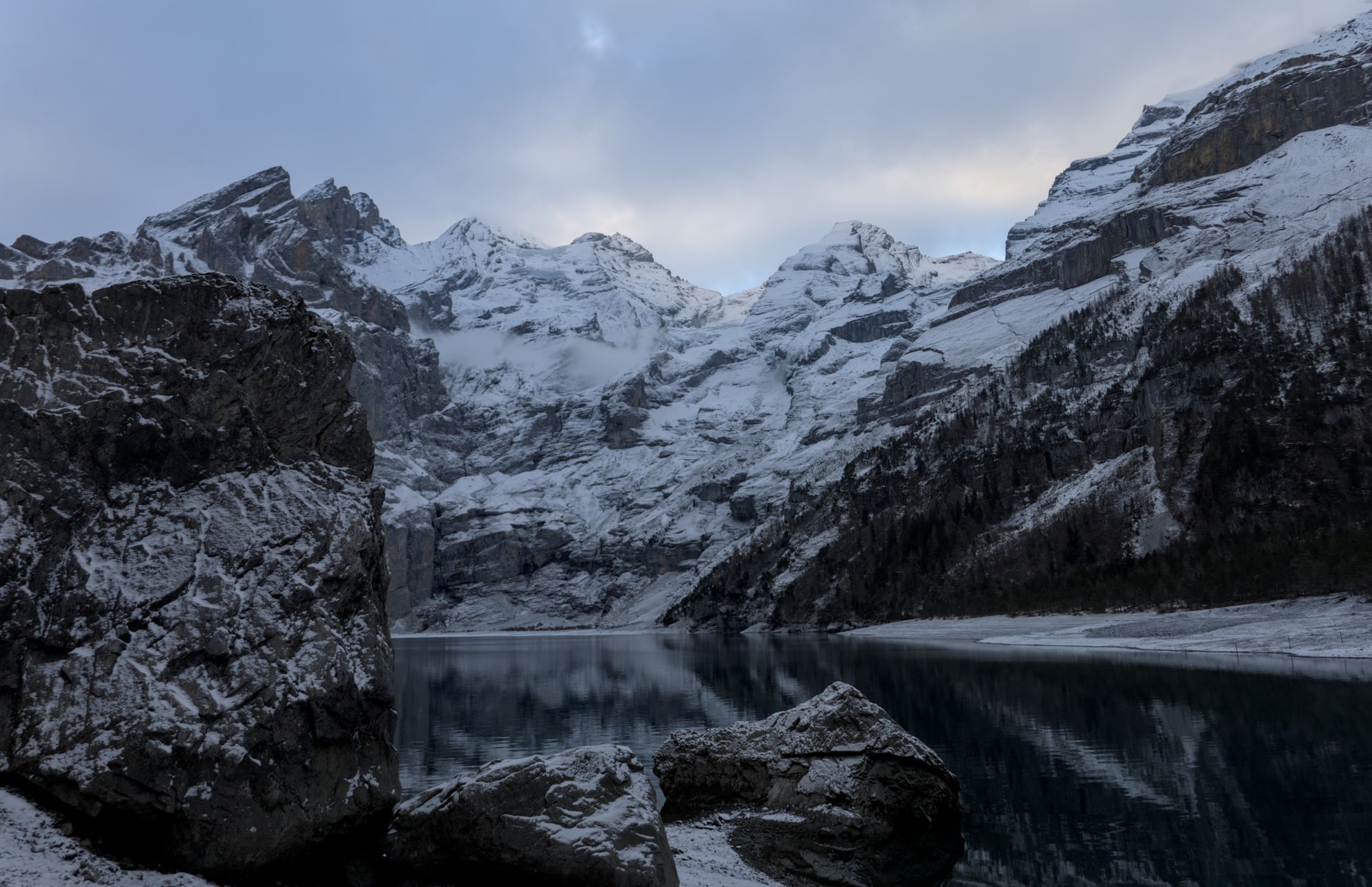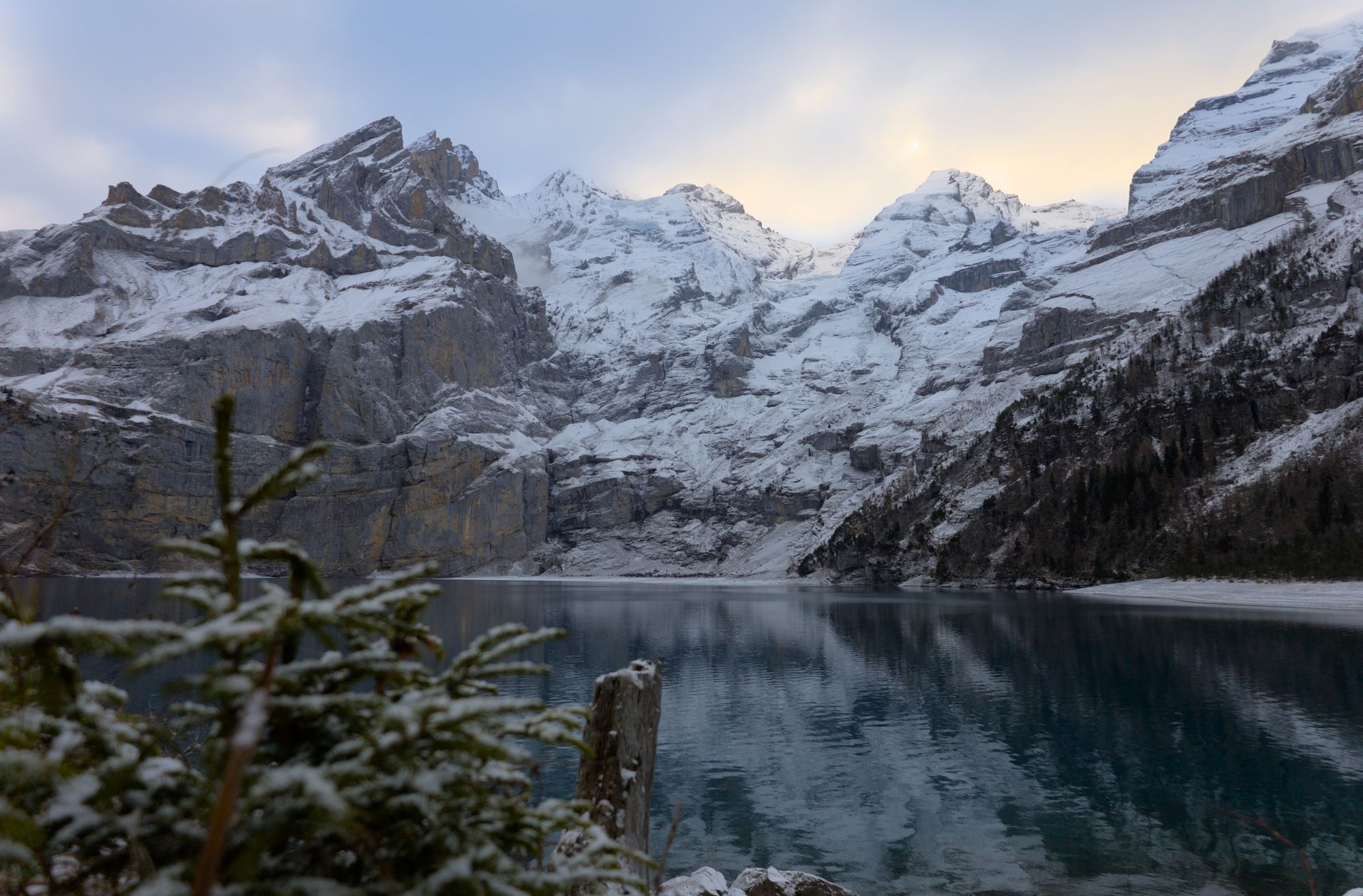 Hike to Oeschinensee in winter with some Chamois encounters.