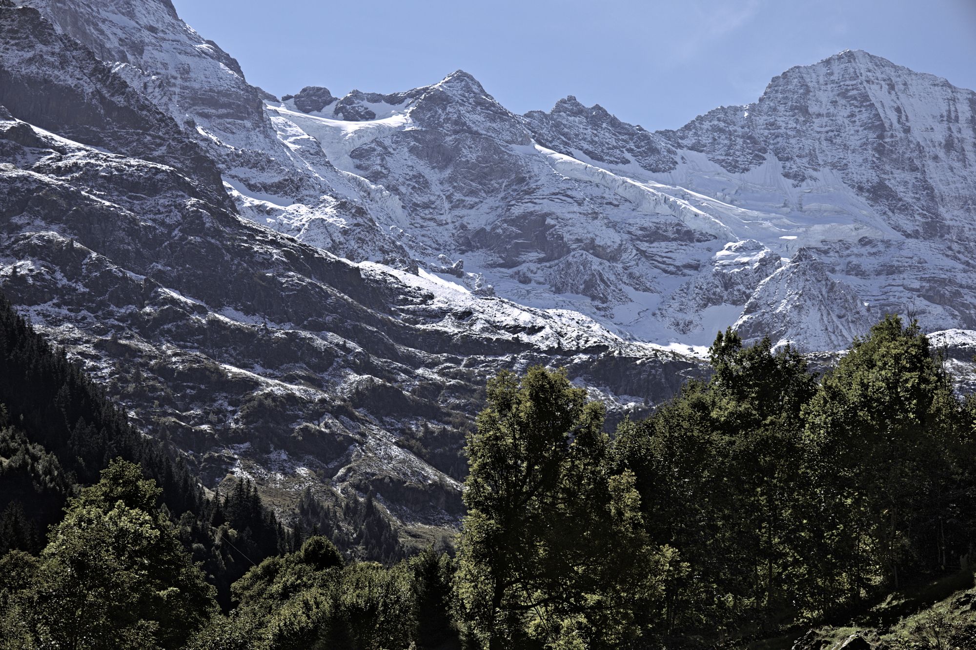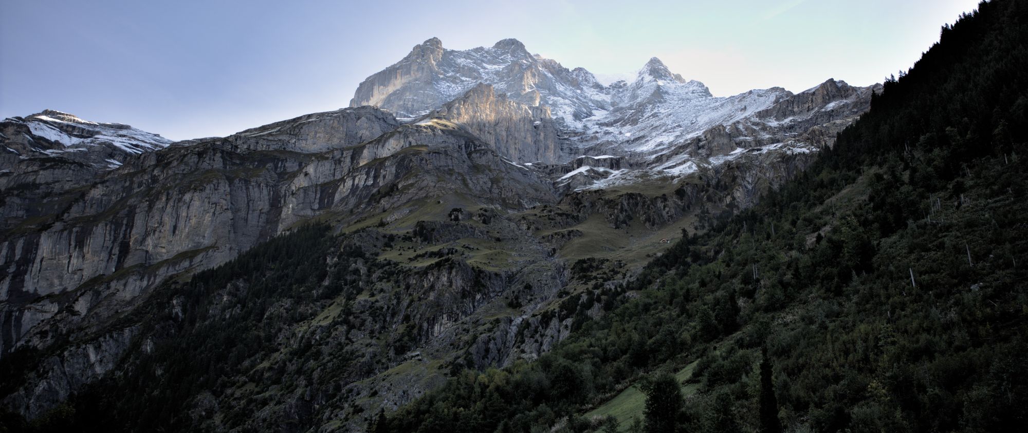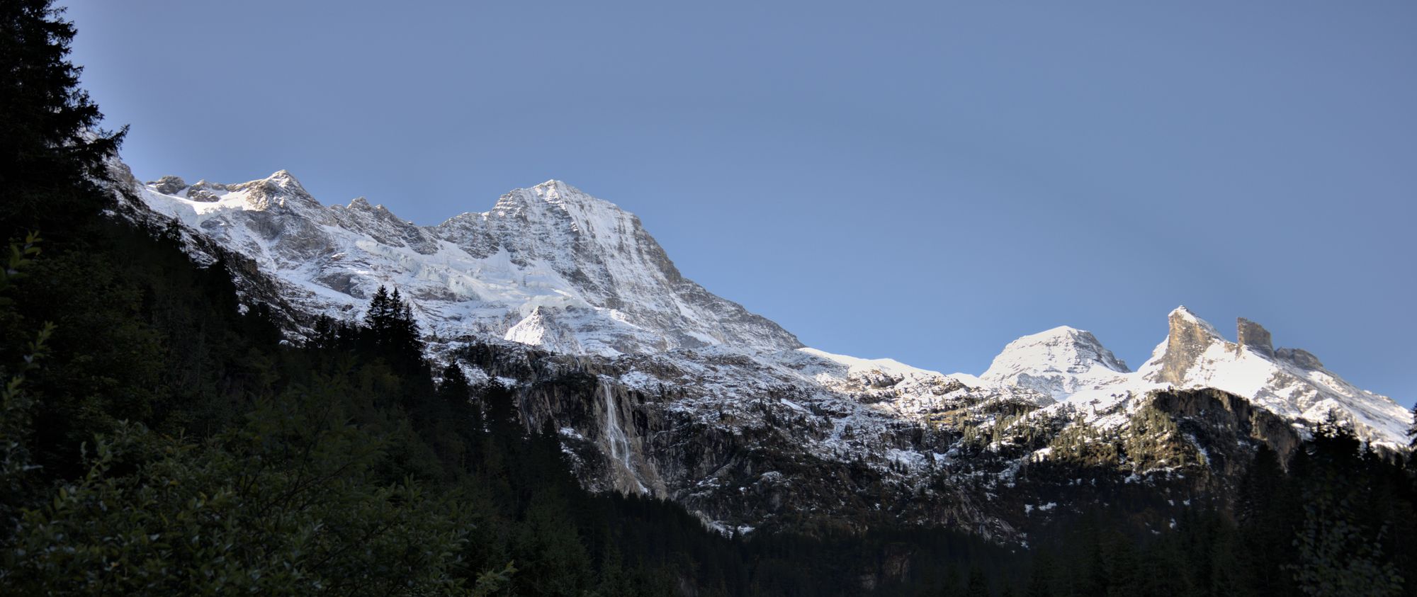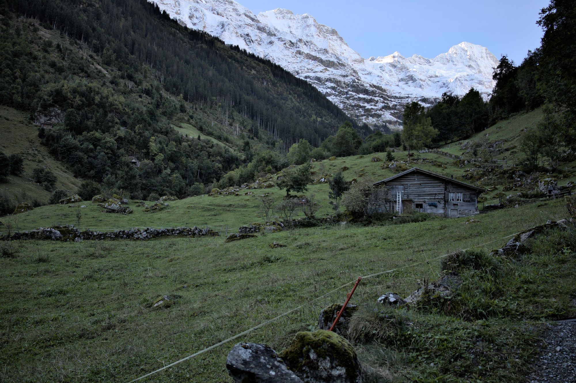 The tour starts at the Stechelberg bus stop. The hike starts by following the Weisse Lütschine river up to the Traueschaulen hamlet. The first mountain cliffs are visible early in the hike, as well as several waterfalls.