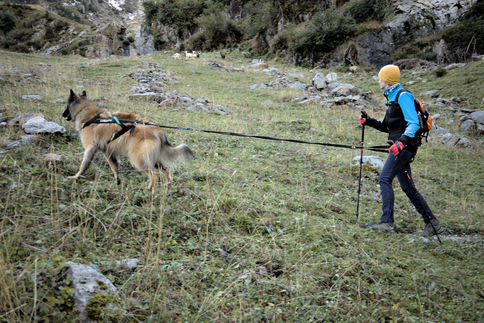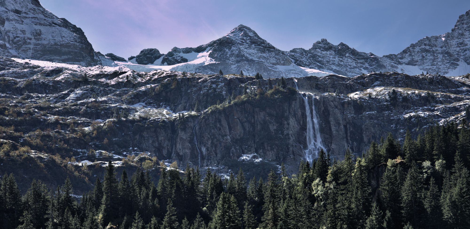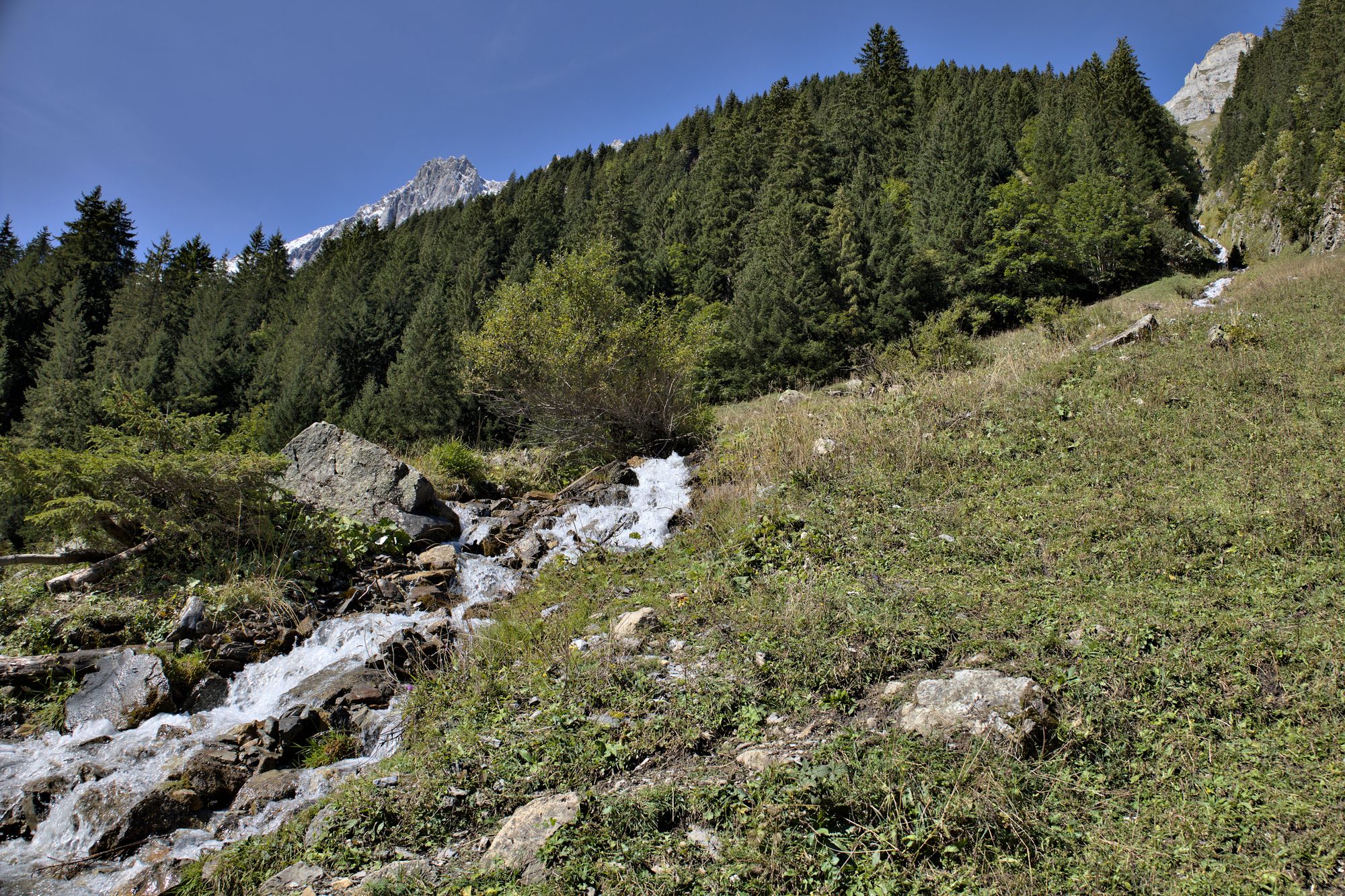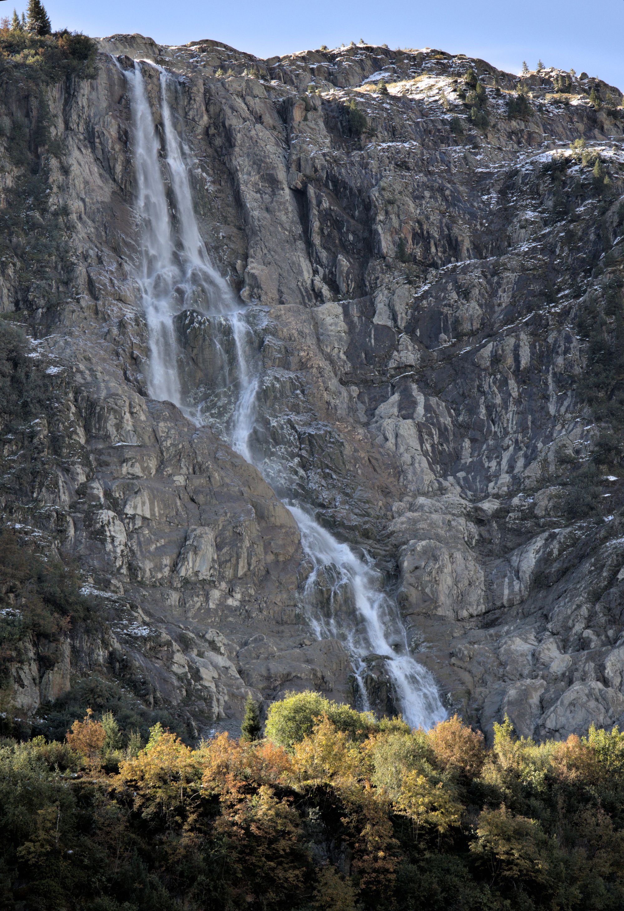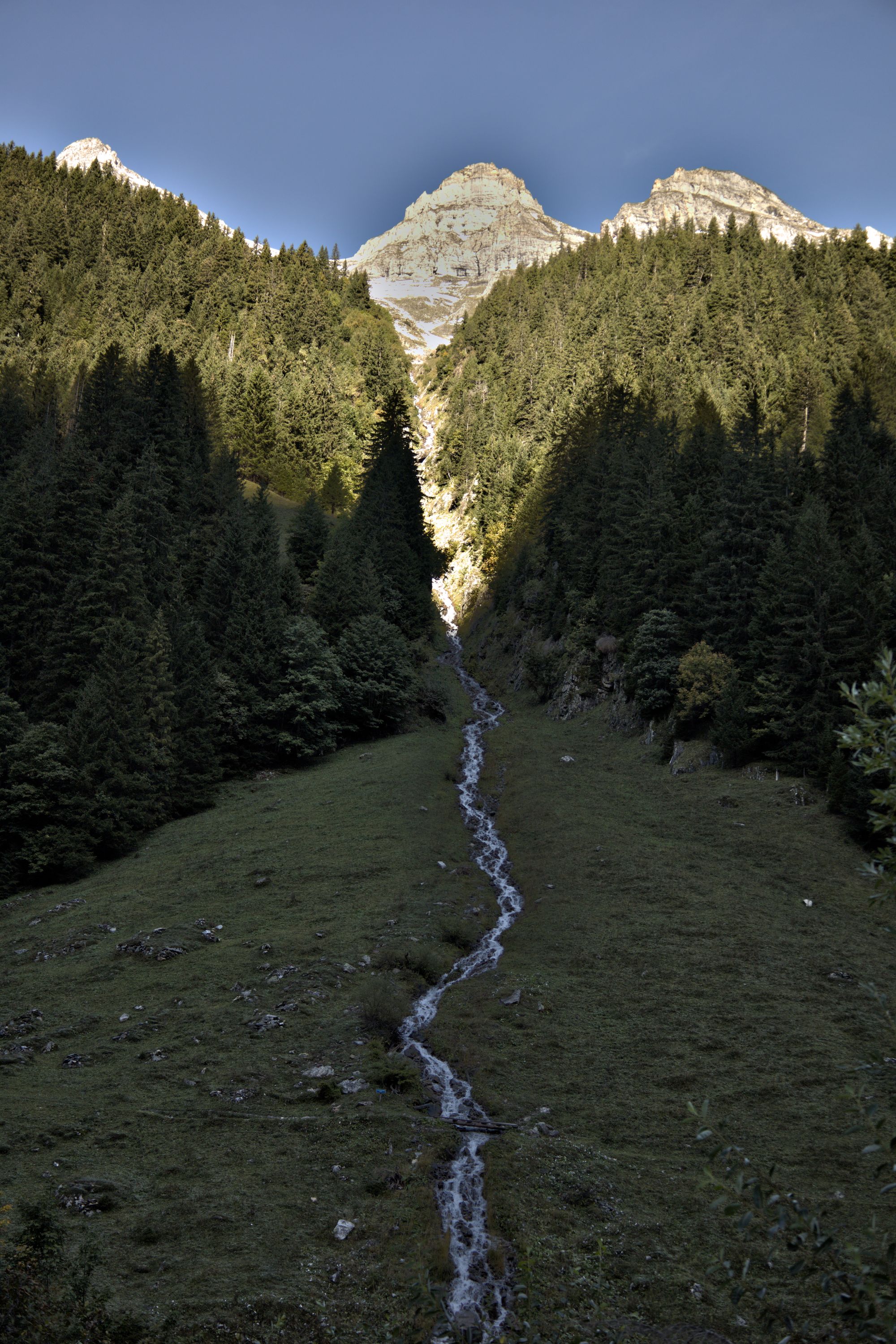 After crossing the river, the path rises and you will have access to views of the entire valley. Goats can be encountered and are rather unfriendly to dogs, as they will follow them. The path leads to the bottom of the Schmadribachfälle which is the biggest and most impressive waterfall of the valley. Depending on the time of the day, the area can be very shaded.
